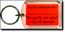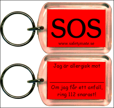 Har du allergi? Vad händer om du får en allvarlig allergisk reaktion på allmän plats? Finns något väl synligt meddelande så att en hjälpande person vet vad som är fel, och hur han kan hjälpa dig? Med vår SOS-bricka för allergiker kan en medmänniska lättare ge rätt hjälp, och även kalla på ambulans om det skulle behövas. Allergi-brickan levereras med förtryckt baksida enligt bild, du fyller själv i din/dina allergier på den tomma raden.